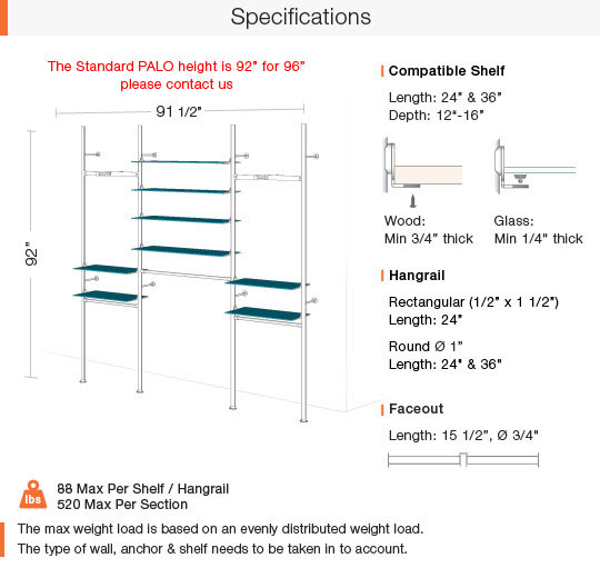 - ניתן לשלב מסילות תליה לכל גובה המעמד